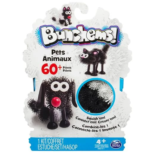 Bunchems – Mascotas – Set 3 Personajes, un set que incluye 60 Bunchems y piezas accesorias decorativas (ojos, pies…). Una fantástica combinación de un juego de construcción con una manualidad, y sin la dificultad de tener que averiguar qué piezas encajan unas con otras. Existen varios sets Bunchems de 3 personajes. Se venden por separado. ¡Colecciónalos! ¡Combínalos! Edad recomendada: +4 años.
