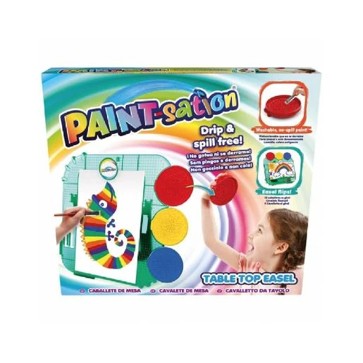 Caballete de mesa, con pintura lavable que no gotea ni se derrama.