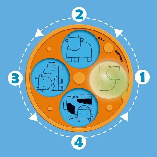 - Dibuja con el rotulador y luego gira el disco a la posición 2, 3 y 4.