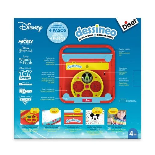 Disney – Dessineo aprende a dibujar paso a paso, un pupitre-maletín para aprender a dibujar personajes Disney en 4 fáciles pasos.