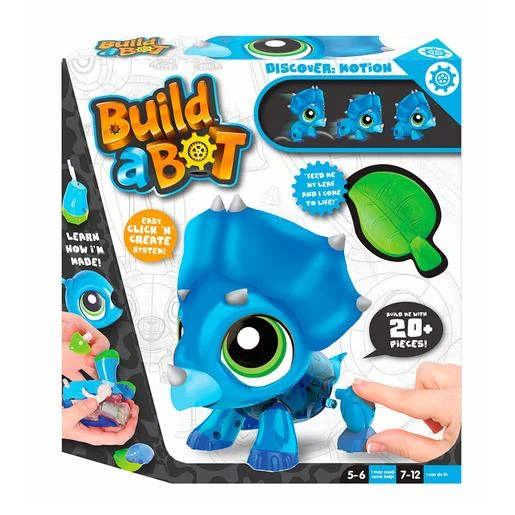Build a Bot – Mascota Robot (varios modelos), una mascota armable de 20 piezas, motor electrónico, pegatinas y una hoja como comida.