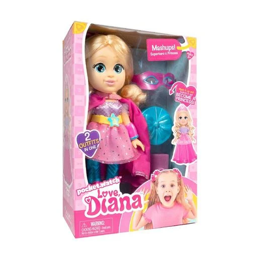 Love Diana – Muñeca princesa o superheroína, una muñeca que mide 33 cm, aproximadamente.