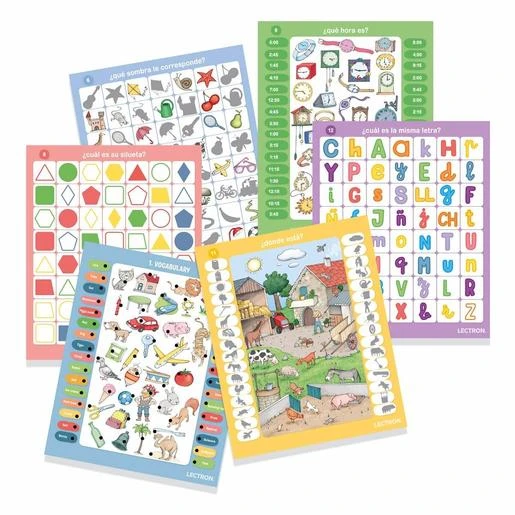 Lectron – Temas Educativos, un clásico juego de asociar cada pregunta con su respuesta que incluye 12 laminas ilustradas a todo color con temas educativos. Contiene 360 preguntas y respuestas que permiten aprender las horas, las formas geométricas y a escribir. Un juego de aprendizaje autocorrectivo (se enciende la luz cuando se acierta) y fácil de jugar. Funciona con 2 pilas AA. Pilas NO incluidas. Edad recomendada: +4 años.