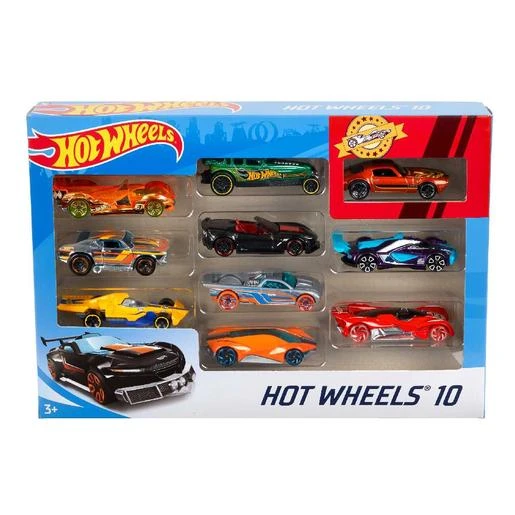 Hot Wheels – Pack 10 Vehículos (varios modelos), los mejores coches metálicos a escala 1:64. Un pack de 10 vehículos Hot Wheels, uno de los cuáles exclusivo. No compatible con algunos conjuntos de juego de Hot Wheels. Edad recomendada: +3 años.