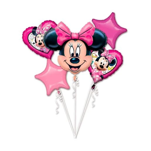 Minnie Mouse – Pack 5 Globos Bouquet, un pack de 5 globos decorados con la imagen de Minnie Mouse.