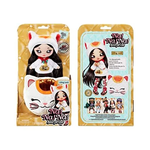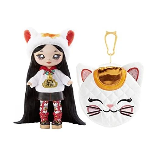 Na! Na! Na! Surprise – Liling Luck – Muñeca Glam Serie 2, una muñeca de moda suave de 19 cm aproximadamente y un monedero de gatito.