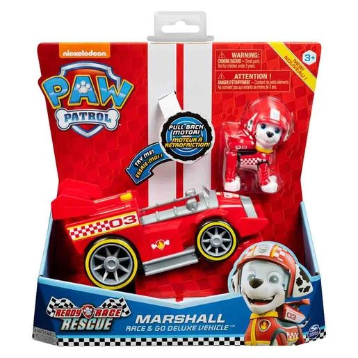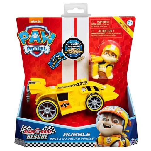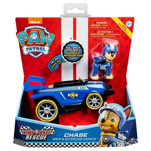 Este coche de la temática Ready Race Rescue de la Patrulla Canina tiene motor pull back y sonidos.