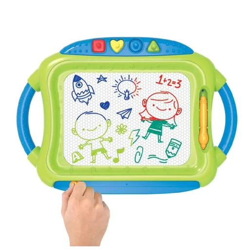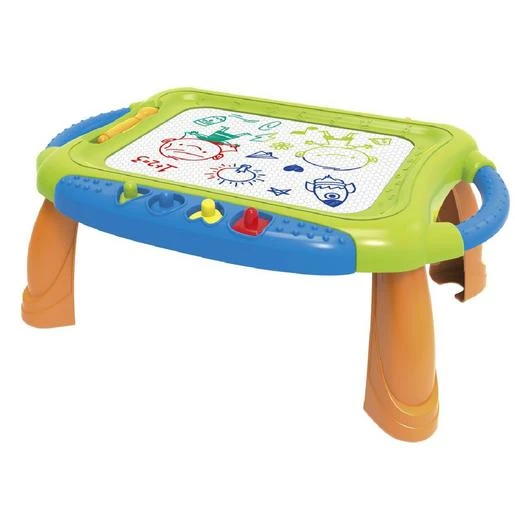 Los niños podrán sentarse cómodamente frente a su mesita y dibujar lo que se les ocurra. Si quieren borrar su dibujo solo tienen que deslizar la pequeña palanca y todos los dibujos se borrarán, ¡como por arte de magia!