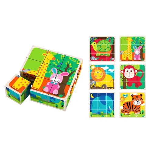 Puzzle de Madera Animales 9 Piezas, un set de 6 puzzles en 1 con 9 piezas en forma de cubos de madera.
