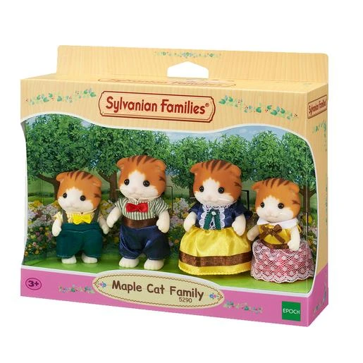 Sylvanian Families – Familia Gatos Mapple, este set incluye 4 figuras de la familia Gatos Mapple, incluye a mamá, papá y 2 hijos, con sus vestidos característicos. Son una familia muy divertida que les gusta reunirse y hacer actividades al aire libre. Figuras suaves de material flocado y aterciopelado con detalles de gran calidad. Edad recomendada: +3 años.